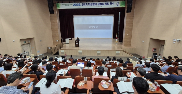 연수 주요 내용은 △ 2025학년도 학업 성적 관리 시행 지침 안내 △ 평가 관련 주요 민원 사례 분석 △ 선행 출제 점검 지침 △ 고교학점제 학점 이수 인정 기준 안내 △ 최소 성취 수준 보장지도 운영 방안 등이다.