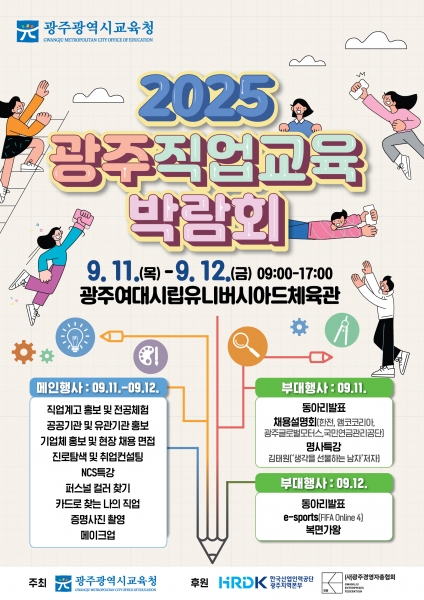 [국회의정저널] 광주시교육청은 오는 11~12일 광주여자대학교시립유니버시아드체육관에서 중·고등학생 5천여명이 참여한 가운데 ‘2025 광주 직업교육박람회’를 개최한다.