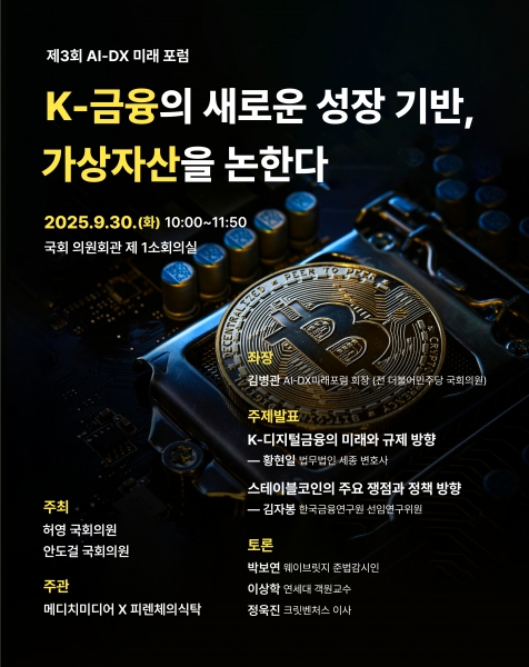 “K-금융의 새로운 성장 기반, 가상자산을 논한다” 제3회 AI-DX 미래 포럼, 9월 30일 개최