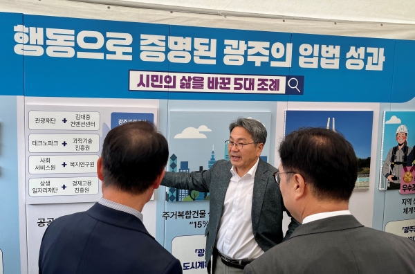 광주광역시는 23일부터 24일까지 이틀간 국회 중앙 잔디광장에서 열리는 ‘2025 국회입법박람회’에 참가해 광주시정 홍보부스에서 △전국 확산된 3대 혁신정책 △중앙정부가 주목하는 2대 정책 △국가 발전을 이끈 4대 입법 성과를 중심으로 광주시 우수 정책들을 국민에게 직접 알렸다.