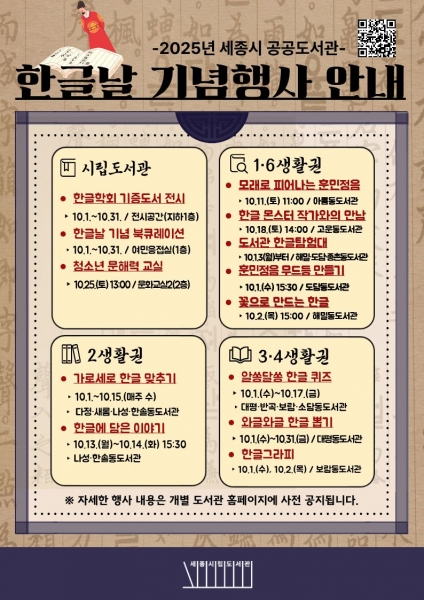 세종시 공공도서관에서 더 특별한 한글날 보내요