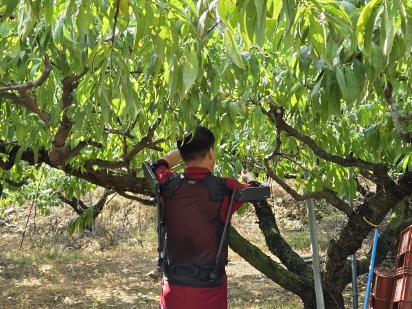 조끼형 구조로 설계된 이 장비는 반복적인 윗보기 작업이 많은 과수 전정·수확 과정에서 어깨 근력을 보조해 신체의 부담을 줄여주는 역할을 한다.