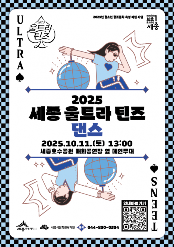 [국회의정저널] 세종시가 오는 11일 오후 1시 세종호수공원에서 세종한글축제 메인무대를 춤으로 가득 채우는 ‘세종 울트라 틴즈 댄스대회’를 개최한다.