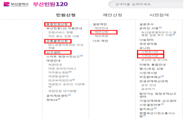민원인은 △‘부산민원120’의 온라인 민원창구를 통해 건의, 질의, 고충 등 각종 민원을 신청할 수 있으며 각 소관 부서에서는 온라인으로 답변을 제공하는 방식으로 처리된다.