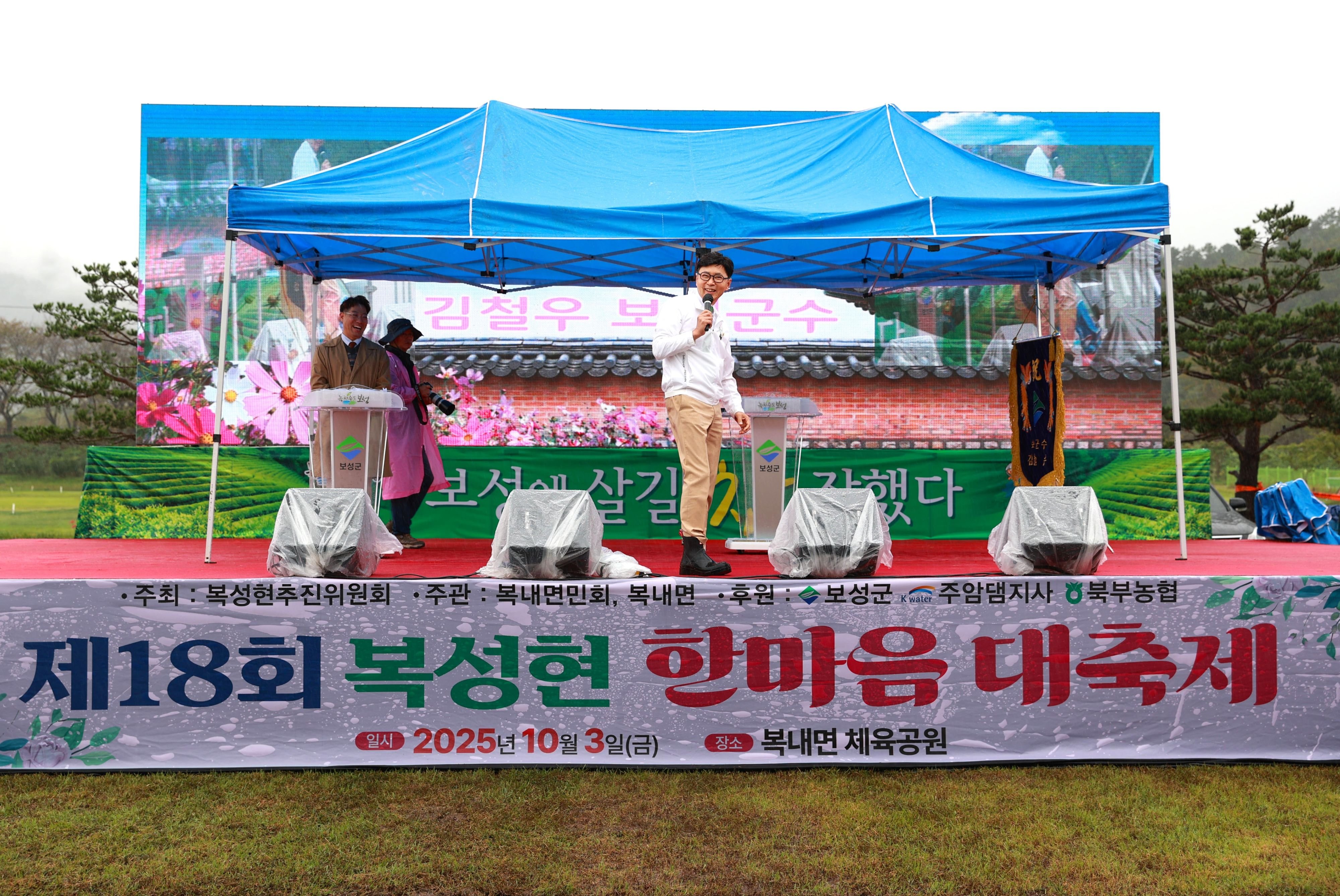 4-1. 보성군, 지역민 화합의 장 ‘복성현 한마음 대축제’ 개최_‘제18회 복성현 한마음대축제’에서 김철우 보성군수가 축사를 전하고 있다