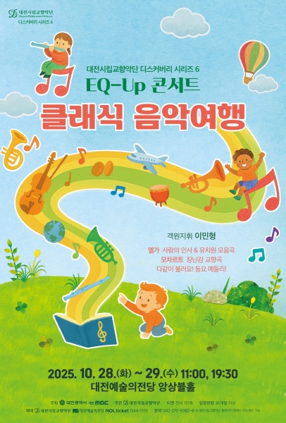 [국회의정저널] 대전시립교향악단은 28~29일 이틀 동안 대전예술의전당 앙상블홀에서 EQ-Up 콘서트 ‘클래식 음악여행’을 선보인다.