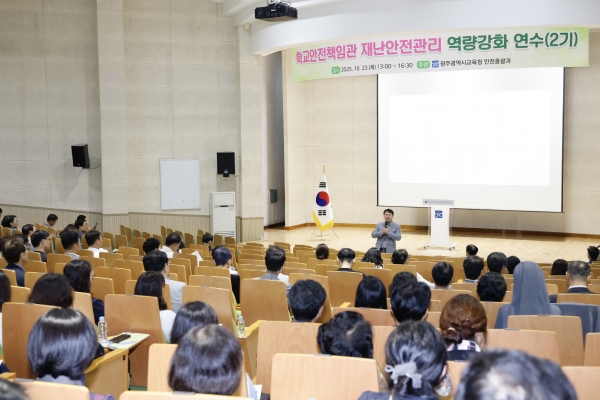 [국회의정저널] 광주시교육청은 23일 광주시교육청시민협치진흥원 대강당에서 학교장, 교감, 행정실장 등 350여명을 대상으로 ‘2025학년도 학교안전책임관 재난안전관리 역량강화 연수’를 실시했다.