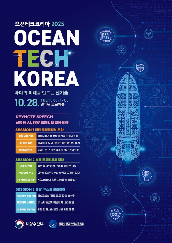 [국회의정저널] 해양수산부는 10월 28일 서울 엘타워에서 ‘바다의 미래를 만드는 신기술’을 주제로 ‘오션테크코리아 2025’를 개최한다고 밝혔다.