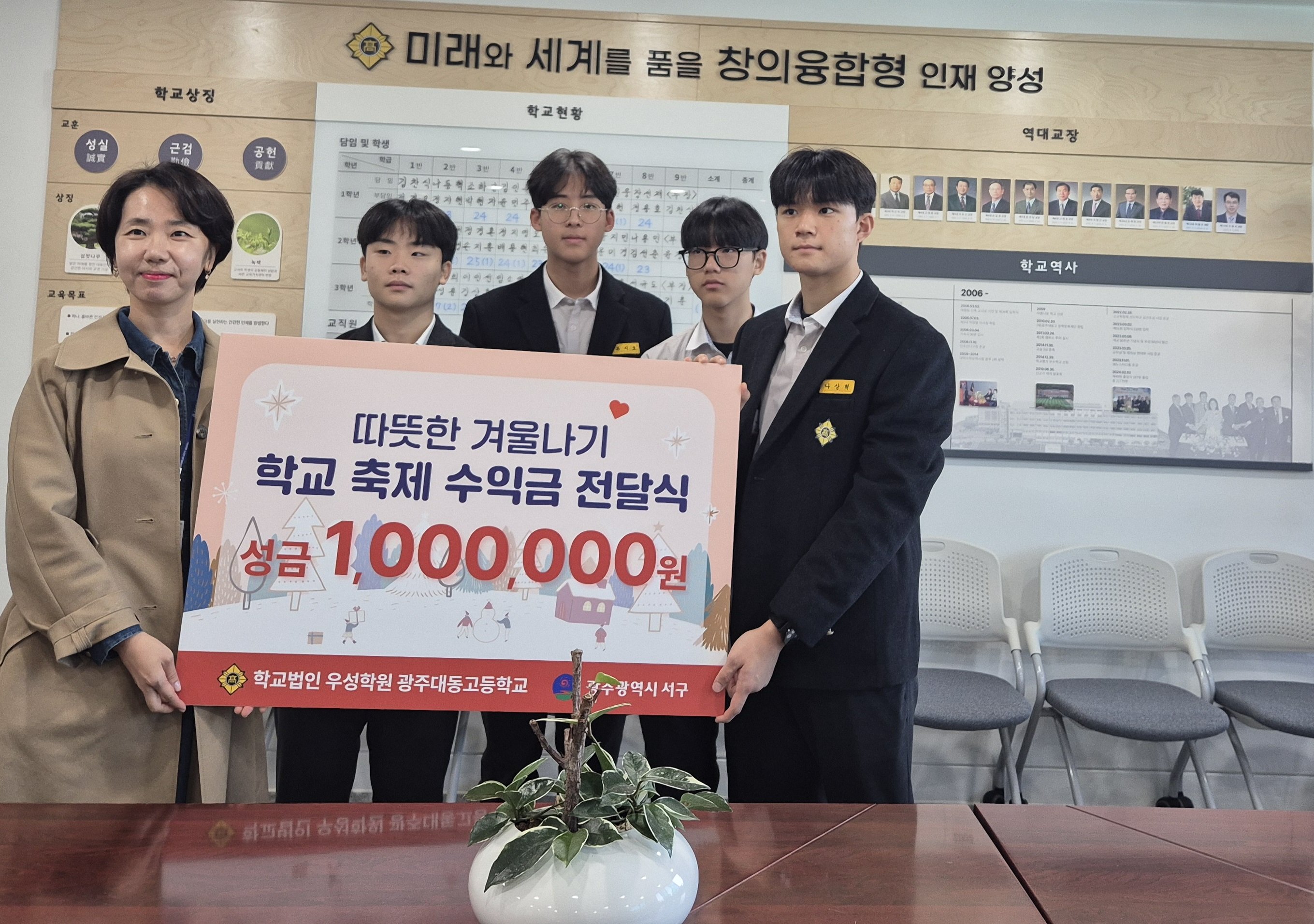 광주대동고 우정석 교장은 “코로나 이후 처음으로 학생들이 스스로 기획하고 참여한 축제라 의미가 깊다”며 “이번 축제를 계기로 학생들이 공동체의 소중한 가치를 배우고 나눔의 기쁨을 몸소 체험하며 더욱 성장하기를 기대한다”고 말했다.