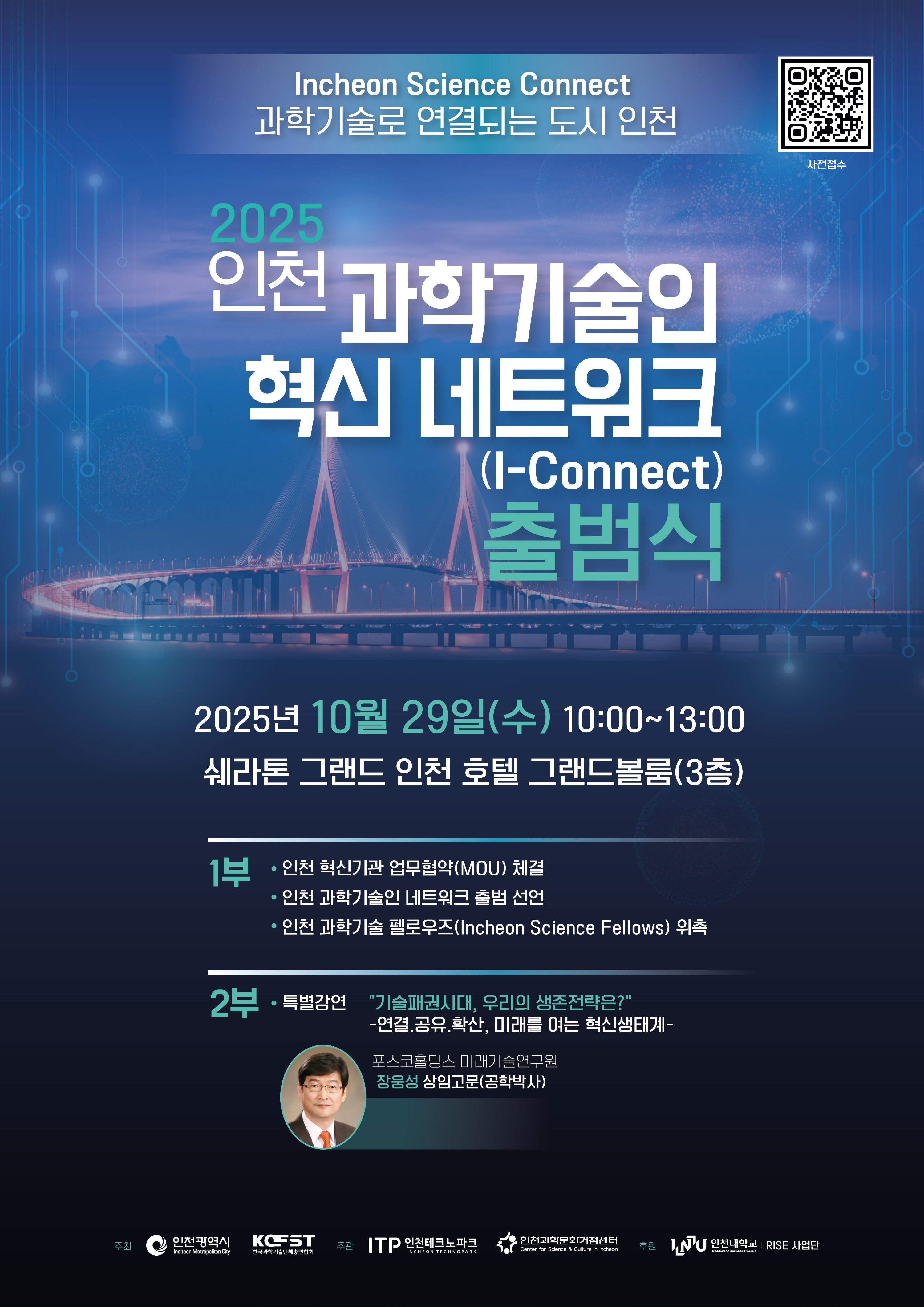 [국회의정저널] 인천광역시(시장 유정복)는 10월 29일 쉐라톤 그랜드 볼룸에서 ‘인천 과학기술인 혁신 네트워크(i-connect)’출범식을 개최하고 지역 과학기술 주체 간 협력기반 강화를 위한 본격적인 행보에 나섰다고 밝혔다.