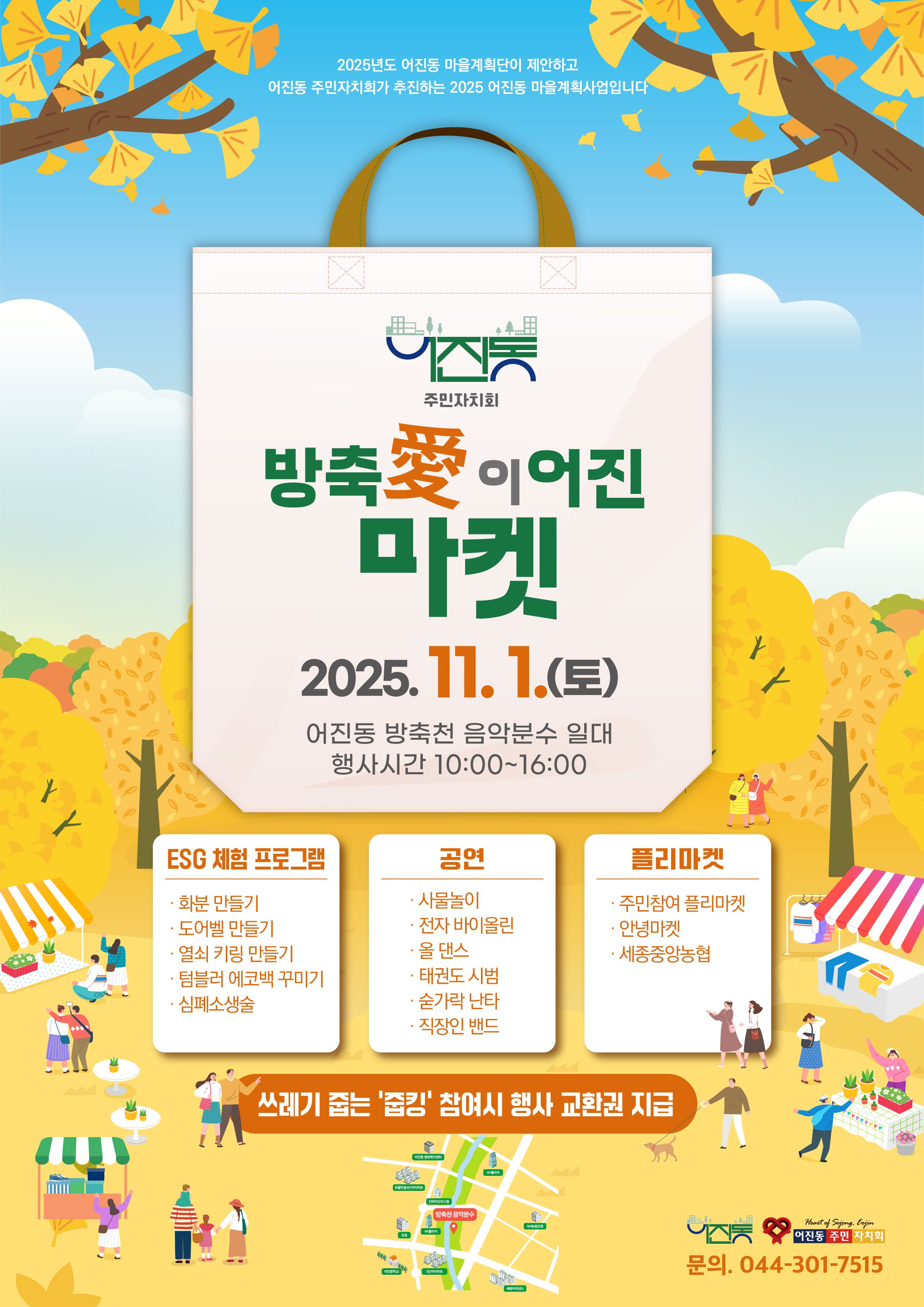 [국회의정저널] 세종시 어진동이 다음달 1일 오전 10시부터 오후 4시까지 방축천 음악분수 일원에서 어진동 주민자치회와 함께하는 ‘방축애 이어진마켓’을 개최한다.