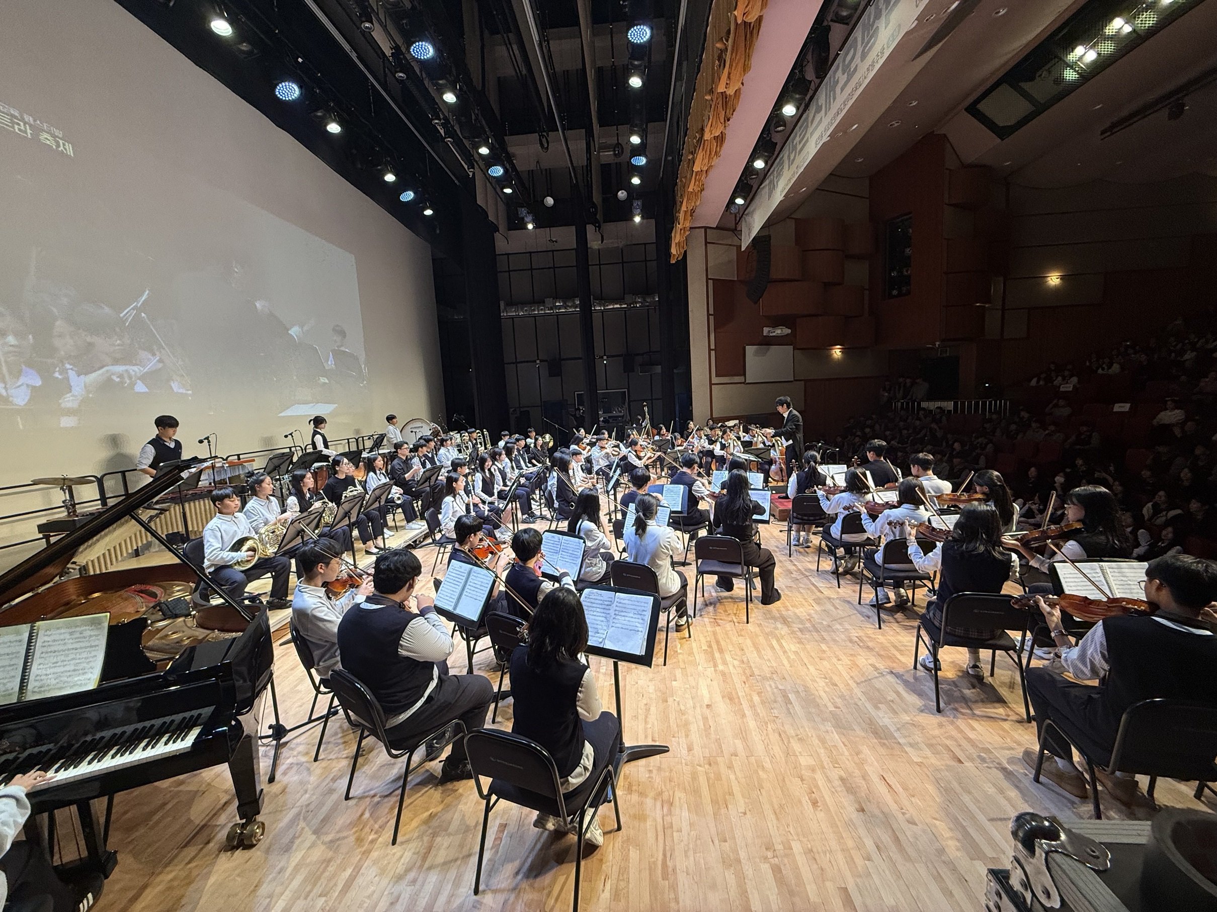 특히 560여명의 학생들이 참여해 학교 특색에 맞는 관현악, 현악, 관악합주, 사물놀이, 합창, 밴드, 오케스트라 등 다채로운 공연을 선보였다.