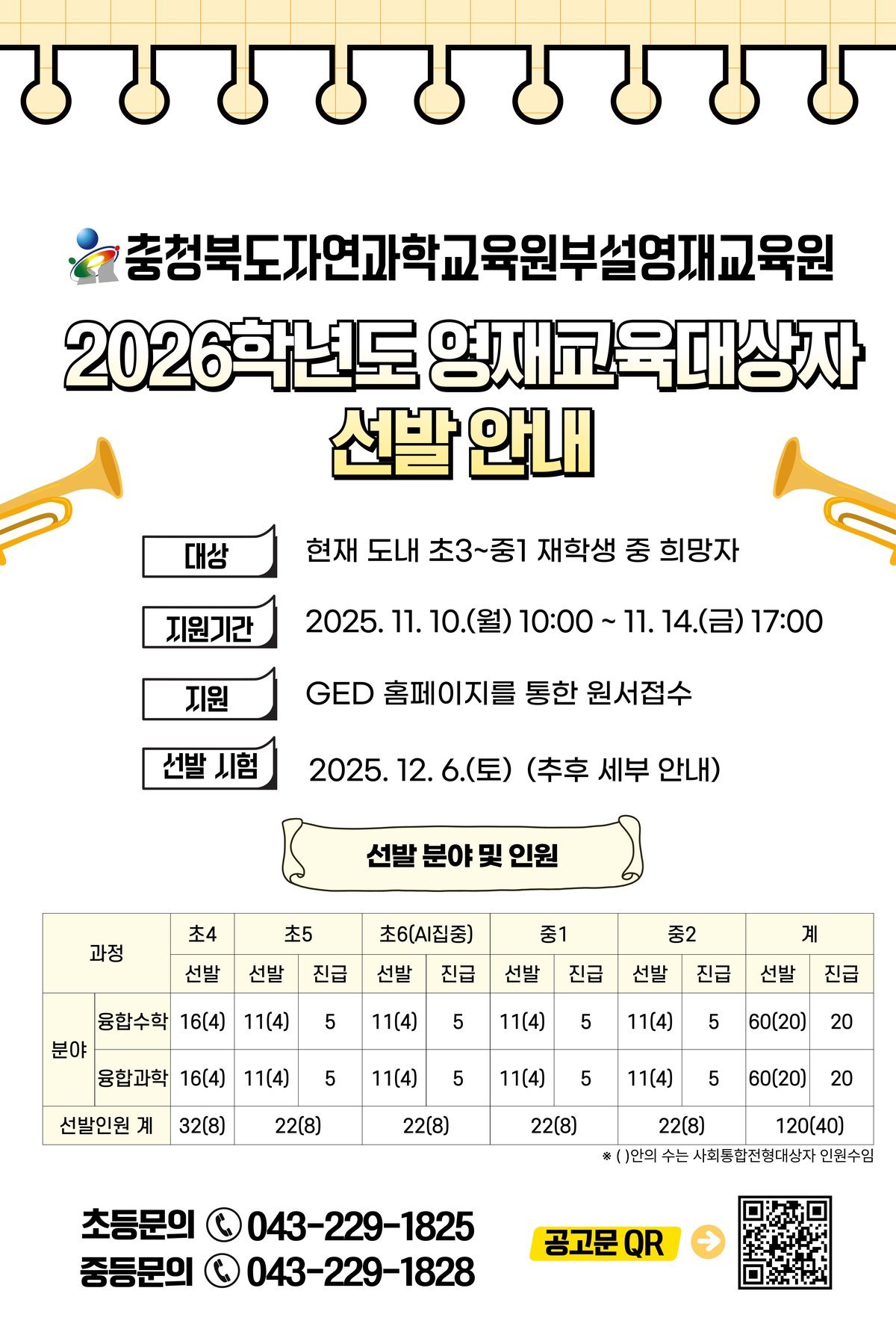 자연과학교육원 2026학년도 영재교육대상자 선발 포스터 (사진제공=충청북도교육청)
