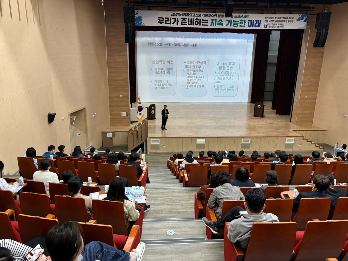전남학생공공외교스쿨 객원교수들의 교육기부형 특강 프로그램으로 마련된 이번 행사에는 도내 초·중·고 학생과 학부모, 교직원 등 200여명이 참석해 글로벌 이슈와 지속가능한 미래에 대해 함께 고민하고 소통하는 시간을 가졌다.