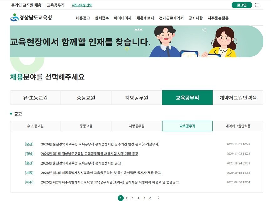 [국회의정저널] 경상남도교육청은 11월 3일 경상남도교육청과 교육지원청 누리집에서 ‘2026년 제1회 교육공무직원 채용시험 시행계획’을 공고했다.