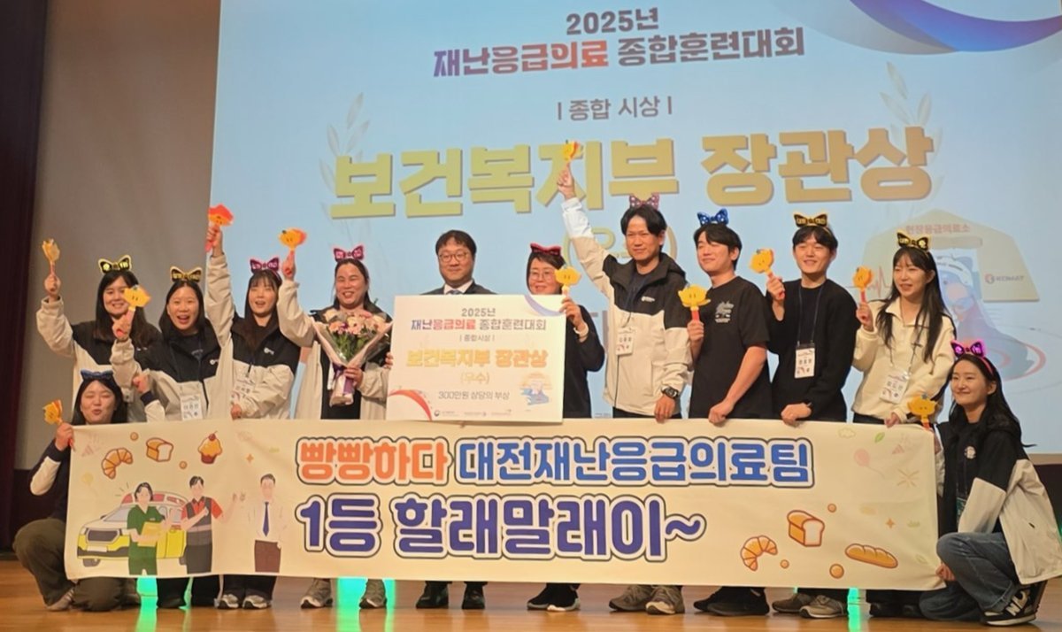 [국회의정저널] 대전시는 천안 JEI재능교육연수원에서 열린 보건복지부 주최 2025년 재난응급의료 종합훈련대회에서 전국 종합 2위를 차지하며 보건복지부 장관상을 수상했다.