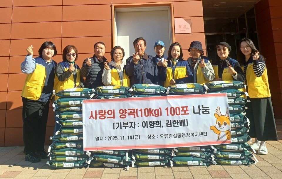 고흥규 오류왕길동장은 “따뜻한 나눔을 실천해주신 두 분께 깊이 감사드린다”며 “기부받은 물품은 생활이 어려운 관내 이웃들에게 소중히 전달하겠다”고 밝혔다.