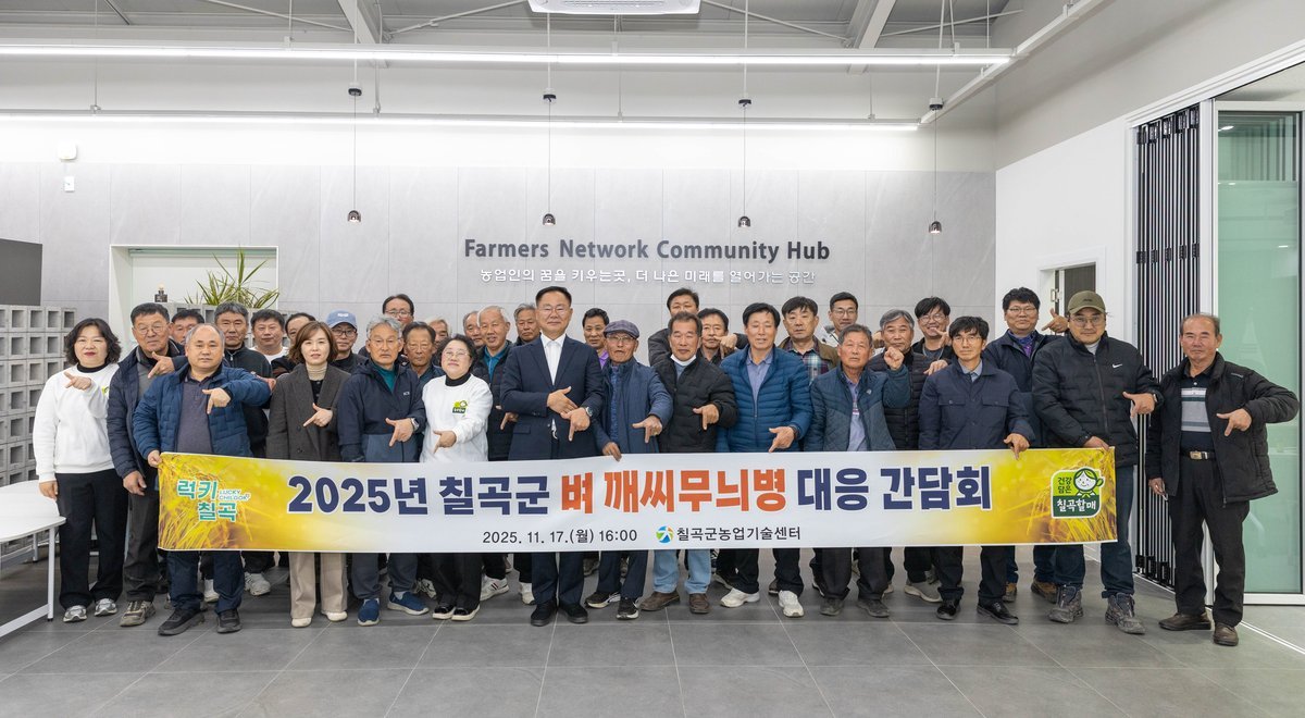 [국회의정저널] 칠곡군은 11월 17일 농업기술센터 청년농업인지원센터에서 벼 깨씨무늬병 확산에 대응하기 위한 ‘2025년 벼 깨씨무늬병 대응 간담회’를 개최했다.