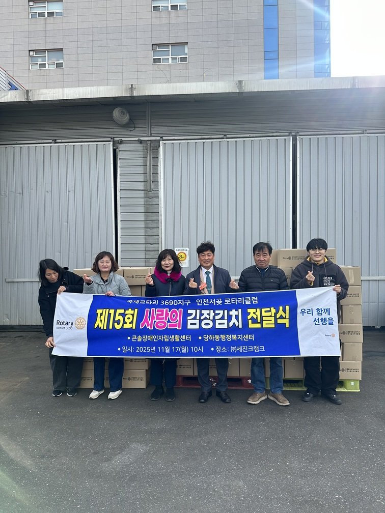 류정안 회장은 “김장김치가 어려운 이웃의 겨울나기에 도움이 되길 바라며 앞으로도 지역사회와 함께 성장하는 로타리클럽이 되기 위해 지속적으로 봉사활동을 이어가겠다”고 전했다 한편 인천서곶로타리클럽은 이번 행사를 포함해 환경정화 활동, 장학사업, 취약계층 지원 등 다양한 지역사회 공헌 활동을 펼치고 있다.