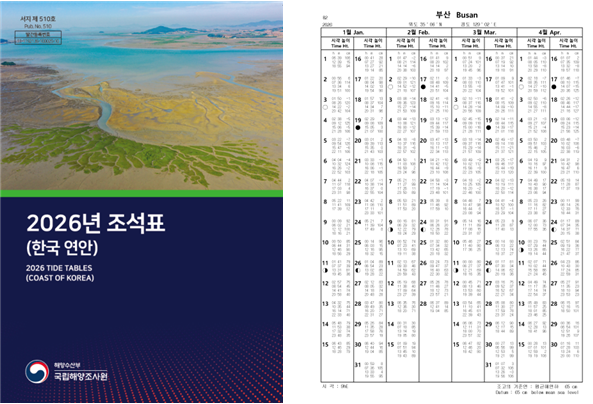 [국회의정저널] 해양수산부 국립해양조사원은 바다를 이용하는 국민이 조석 정보를 확인하고 안전하게 해양 활동을 즐길 수 있도록 ‘2026년 조석표’를 발간했다고 밝혔다.
