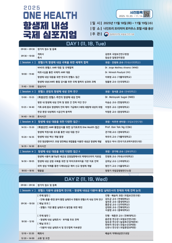 2025년 원헬스 항생제 내성 국제 심포지엄 세부일정