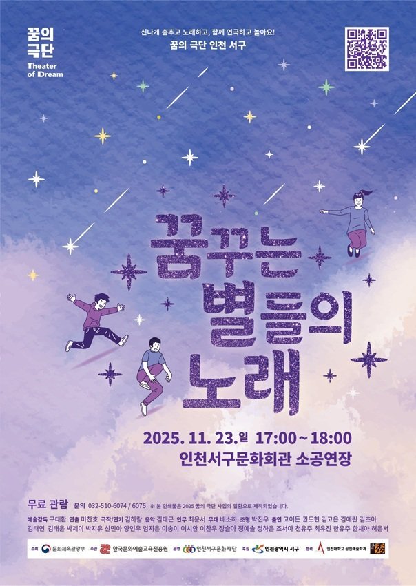[국회의정저널] 인천서구문화재단이 오는 11월 23일 오후 5시, 인천서구문화회관 소공연장에서 ‘2025년 꿈의 극단 인천 서구 정기공연 - 꿈꾸는 별들의 노래’를 개최한다.