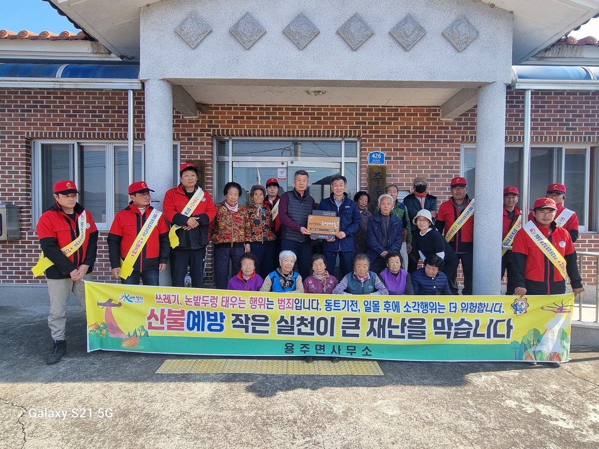 용주면 죽죽마을은 구성모 이장을 비롯한 주민 모두가 합심하여 봄철 산불기간 중 논·밭두렁, 농업 부산물 및 각종 생활쓰레기 등 불법소각 행위를 사전에 차단하고, 산불감시원과 공동으로 산불 취약지역 현장 확인 및 농업부산물을 파쇄하여 불법소각행위는 물론 한 건의 산불도 발생하지 않은 산불 제로 마을로 탄생했다.