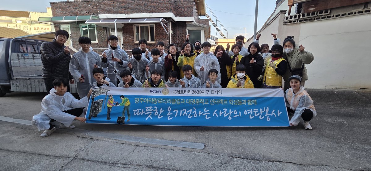 영주아리랑로타리클럽은 매년 겨울철마다 지역의 어려운 이웃들을 돕기 위해 연탄 나눔 활동을 꾸준히 이어오고 있으며, 올해 역시 대영중학교 봉사동아리와 협력해 지역사회에 온기를 전했다.