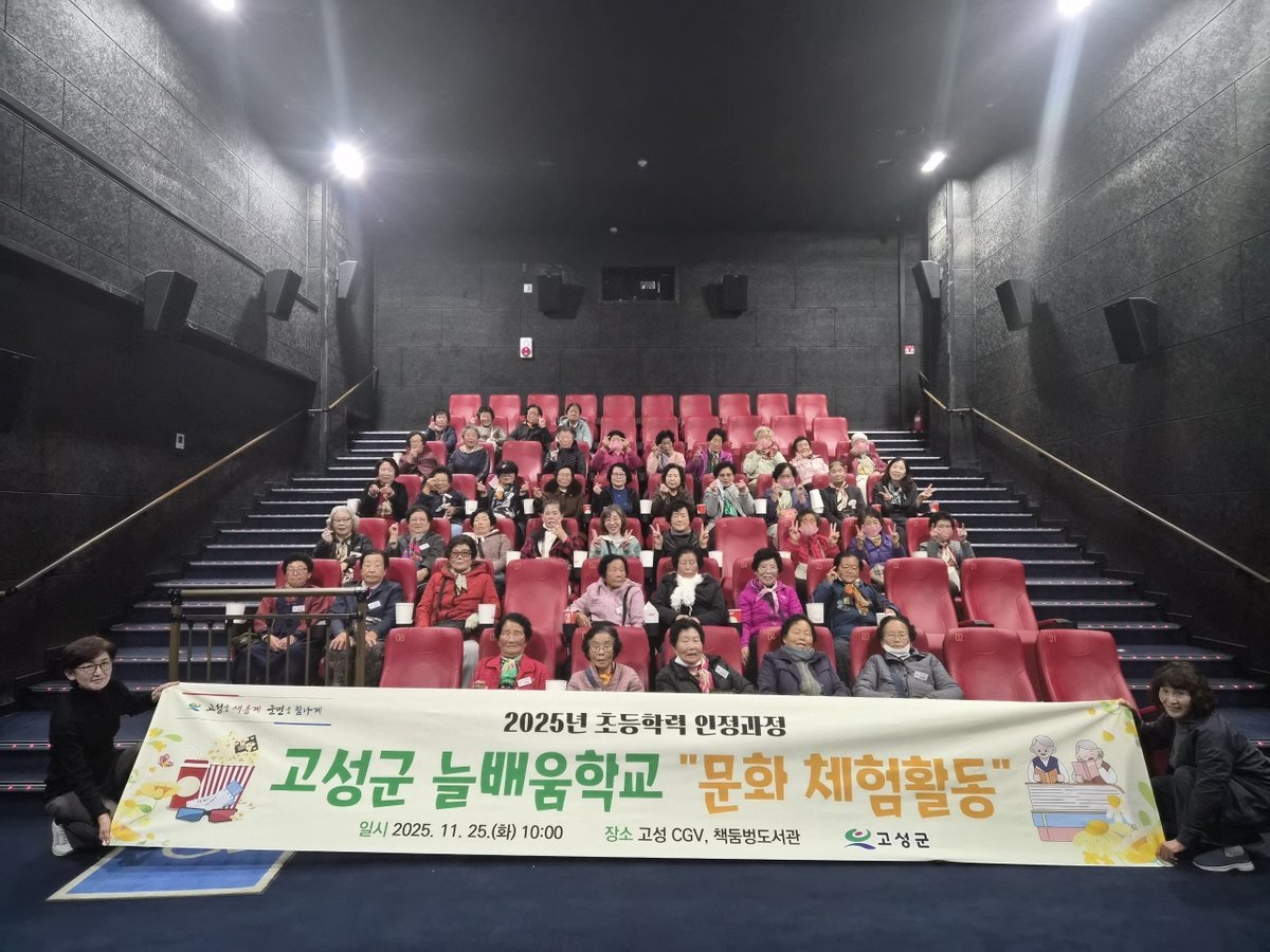 [국회의정저널] 고성군은 평생학습 기회 확대와 문화적 소양 함양을 위해 11월 25일, 초등학력 인정과정 고성군 늘배움학교 학생 50명 대상으로 ‘영화·도서관 문화체험 학습’을 진행했다.