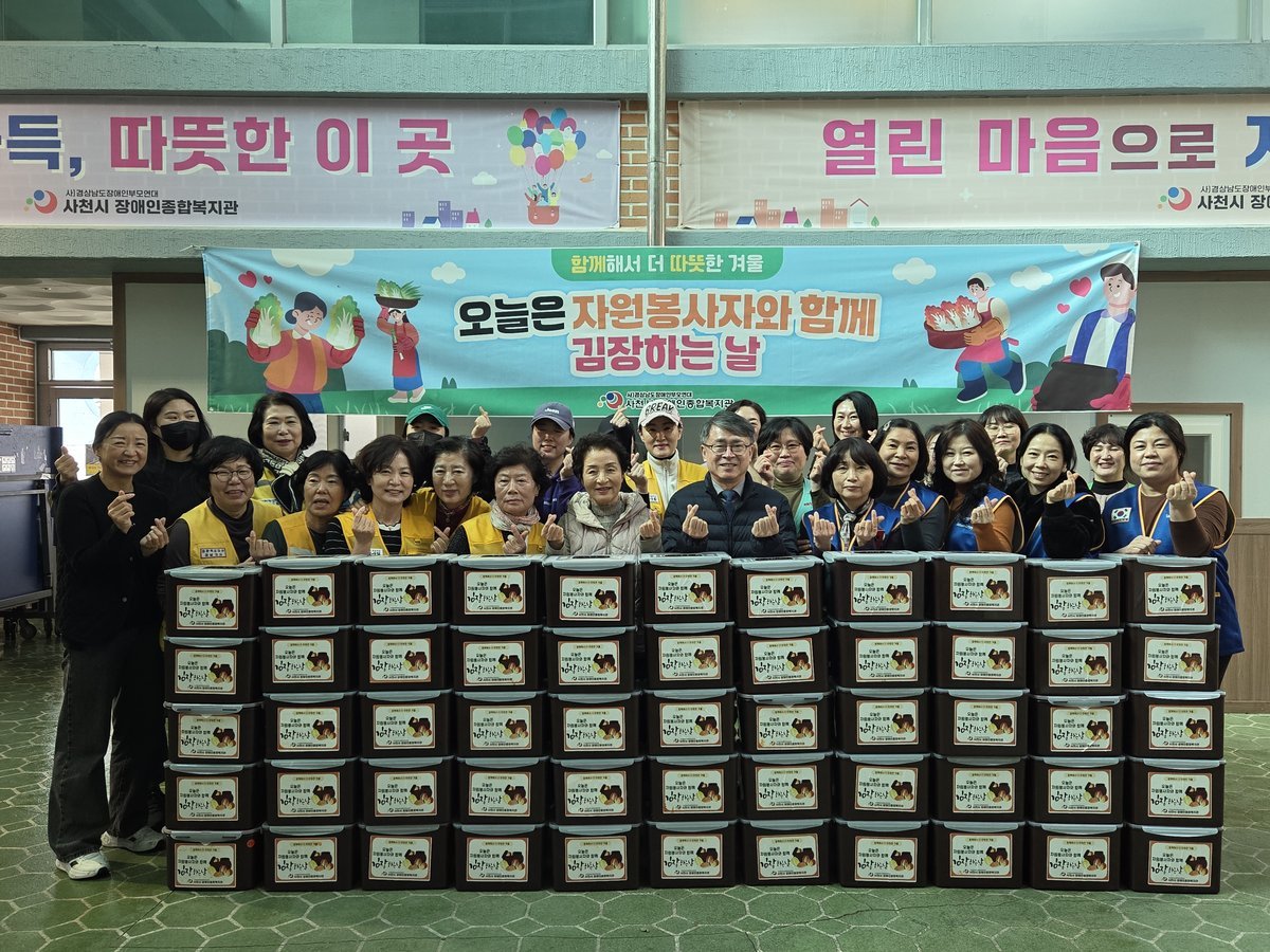 [국회의정저널] 사천시장애인종합복지관은 지난 11월 24일부터 26일까지 지역사회 자원봉사 단체와 함께 ‘2025년 김장지원사업’을 진행해 지역 장애인 60가정에 정성 가득한 김장김치를 전달했다고 밝혔다.