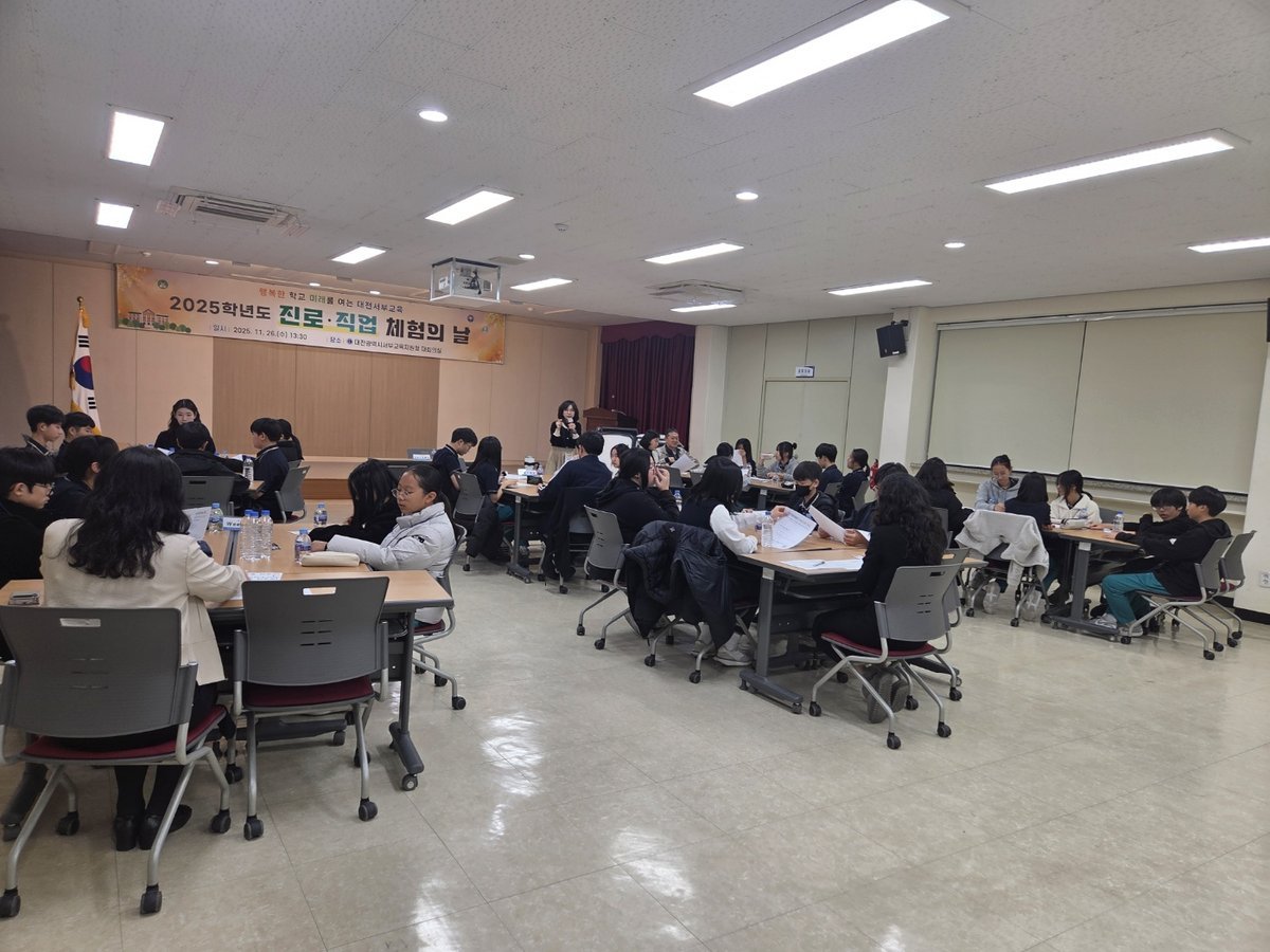 [국회의정저널] 대전서부교육지원청은 살아 있는 진로 교육의 장으로 변모한다. 11월 26일 오후 1시부터 4시까지 대전버드내중학교 1학년 학생 32명을 초청해 ‘2025년 하반기 진로·직업 체험의 날’행사를 개최했다.