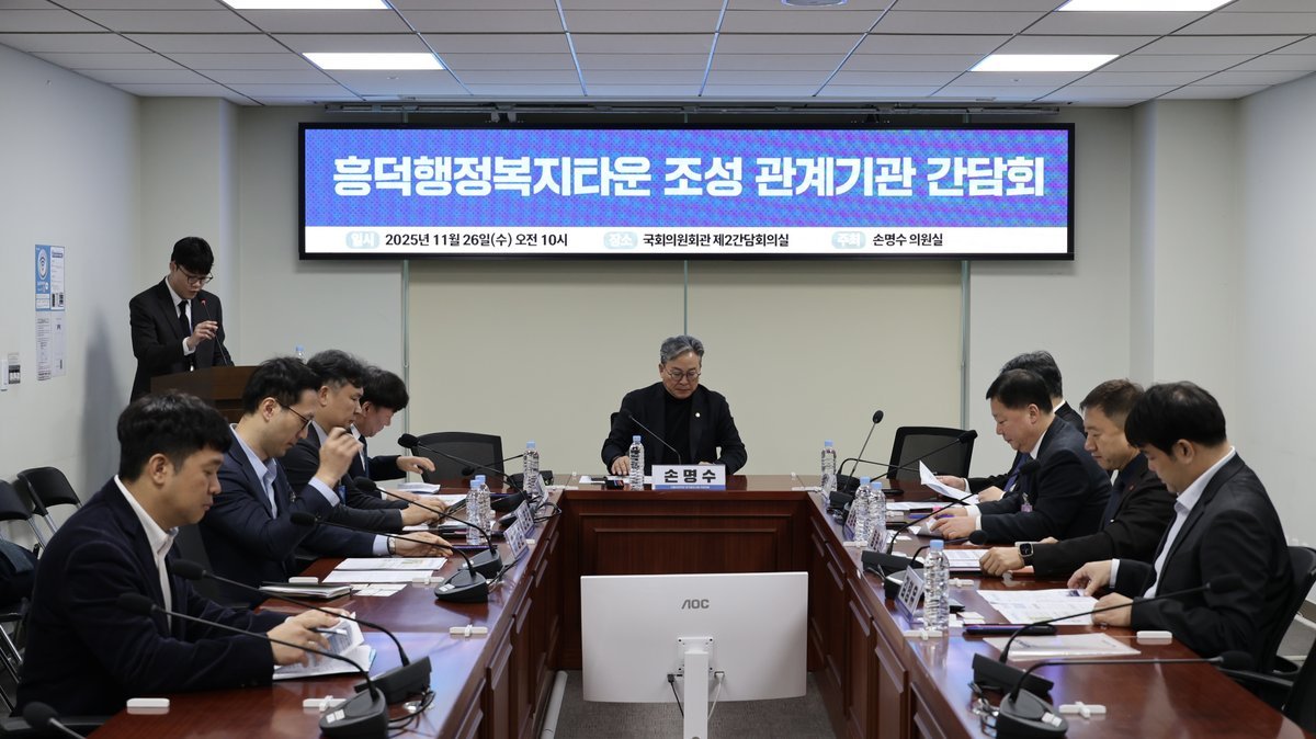 손명수 의원, 용인 흥덕 행정복지타운 조성을 위한관계기관 간담회 개최건보공단 인천경기지역본부·기흥세무서 등 입주 확정으로 흥덕 행정복지타운 조성 기반 마련손명수 의원 “주민과 적극적으로 소통하며 행정복지타운 조성을 흔들림 없이 추진할 것”