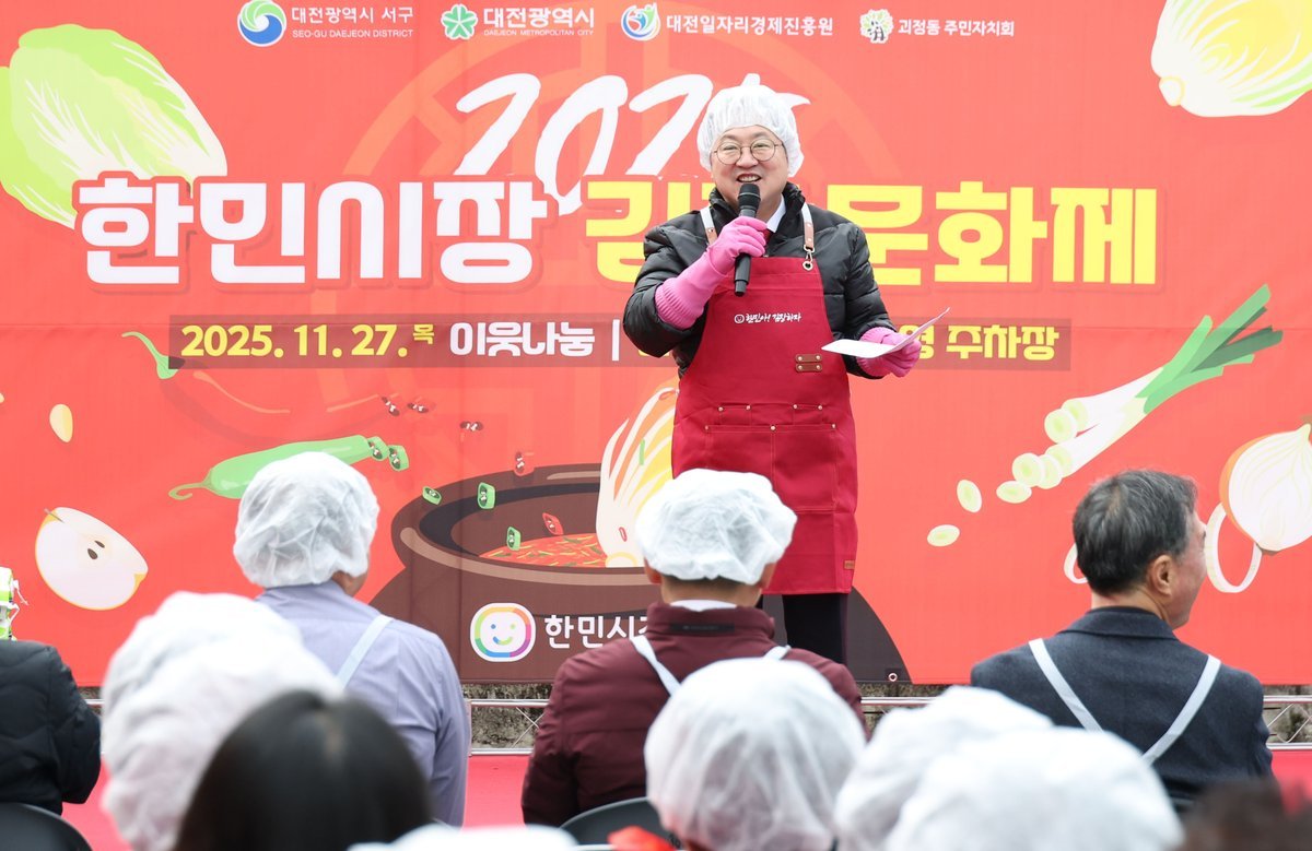 [국회의정저널] 대전시는 27일 한민시장 제2주차장에서 ‘2025 한민시장 김장문화제’를 열고 지역사회에 따뜻한 나눔을 전하며 전통시장 활성화에 힘을 보탰다.