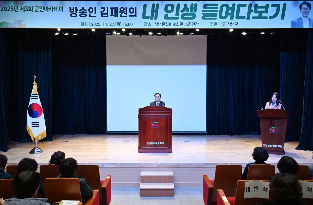 [국회의정저널] 창녕군은 지난 27일 창녕문화예술회관 소공연장에서 전 KBS 아나운서이자 방송인 김재원을 초청해 2025년도 마지막 군민아카데미를 성황리에 개최했다고 밝혔다.