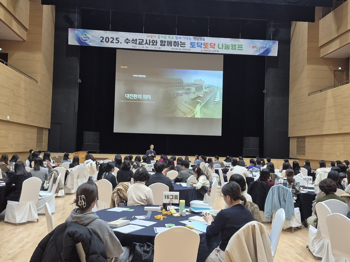 [국회의정저널] 경상남도교육청은 28~29일 사천 인재니움연수원에서 교원의 심리적 회복과 수업 전문성 강화를 위한 ‘2025년 수석교사와 함께하는 토닥토닥 나눔캠프’를 운영한다.