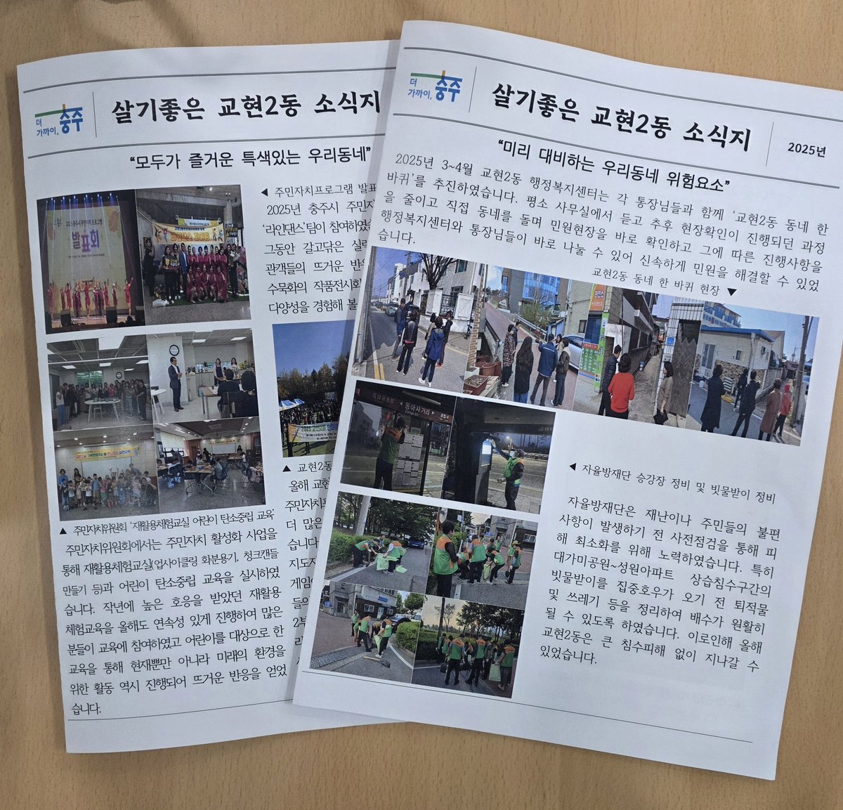 [국회의정저널] 충주시 교현2동 행정복지센터는 올 한 해 동안 교현2동 주민들의 추억을 담은 ‘2025년 교현2동 소식지’를 발간했다고 1일 밝혔다.