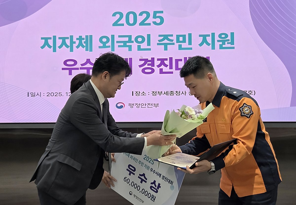 [국회의정저널] 대전동부소방서는 1일 정부세종청사에서 열린 「2025년 지자체 외국인주민 지원 우수사례 경진대회」에서 대전시 대표로 출전한 ‘외국인 주민과 함께하는 119안전라이프+’가 행정안전부 장관상인 우수상을 수상했다.