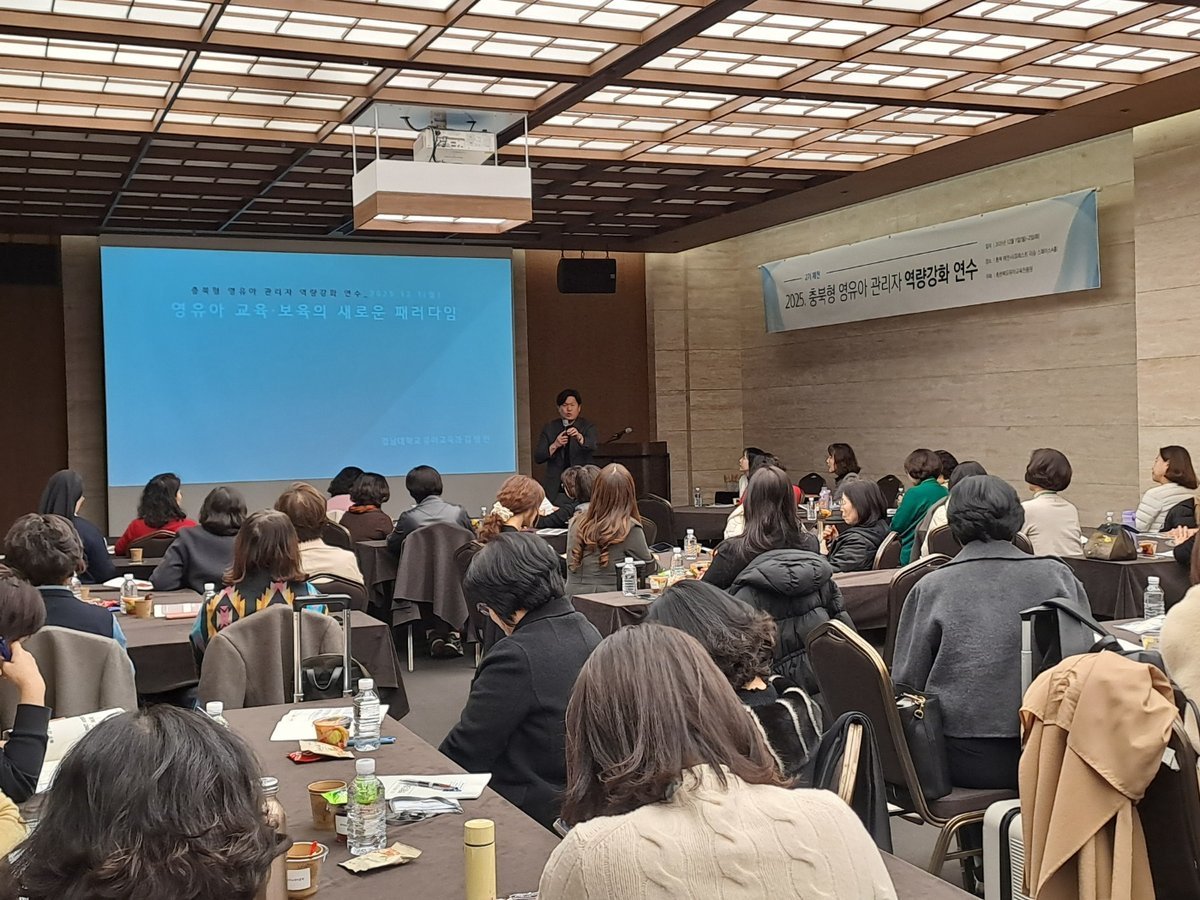 특히, 교육정책분야 특강으로 경남대학교 유아교육과 김병만 교수의 영유아 교육‧보육의 새로운 패러다임 강의가 운영되어 리더 간 소통의 시간으로 영유아 관리자 전문성 향상과 현장의 실천력을 강화하였다.