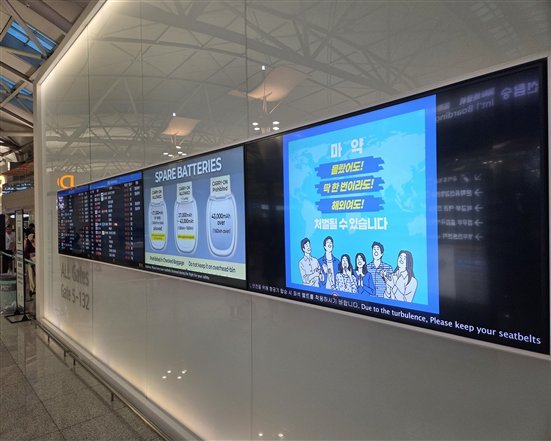 이를 위해 정부는 여행 출발 전 필수적으로 거쳐야 하는 공항의 항공사 데스크, 출국장 등에 해외 마약예방 리플렛, 배너형 홍보물 등을 비치하고, 공항 모니터를 통해 마약 예방 쇼츠 영상을 송출하는 등 여행객들이 출국 전 알아야 하는 마약 주의 관련 정보를 제공한다.