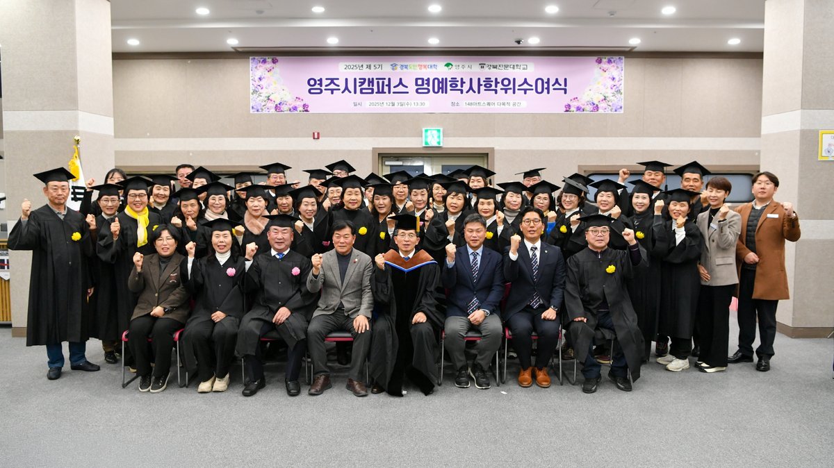 [국회의정저널] 영주시는 지난 3일, 148 아트스퀘어 다목적공간에서 ‘2025년 경북도민행복대학 영주시캠퍼스 ’학위수여식을 개최했다.
