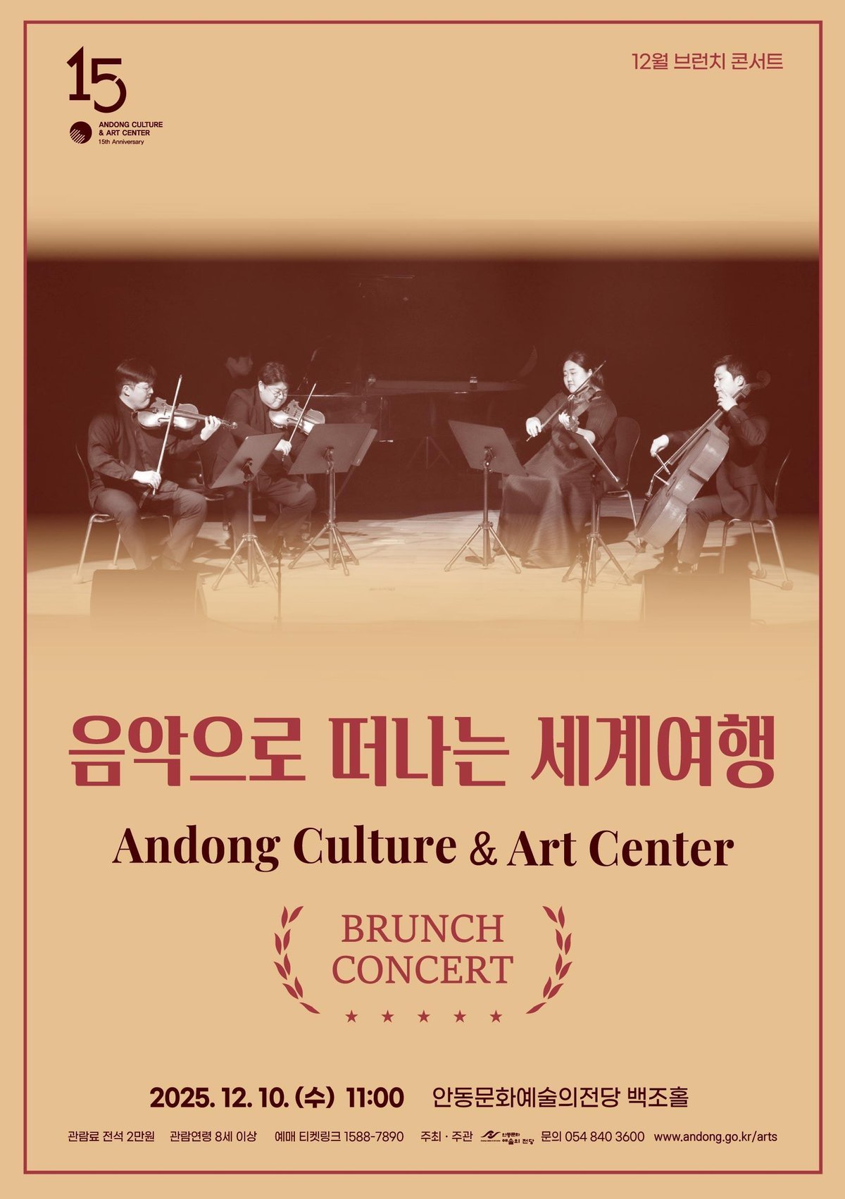 올해 마지막으로 마련된 이번 브런치 콘서트는 관객들에게 음악과 함께 세계를 산책하는 듯한 특별한 오전 시간을 선사하며, 감미로운 선율과 여유로운 브런치 감성을 전할 것이다.