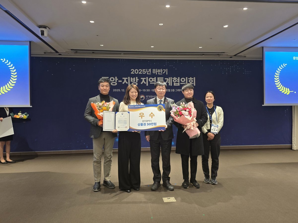 [국회의정저널] 광주광역시는 지난 3일 대전 인터시티호텔에서 열린 국가데이터처 주관 ‘2025년 지역통계 우수사례 공모전’에서 전국 우수기관으로 선정, 국가데이터처장상을 수상했다.