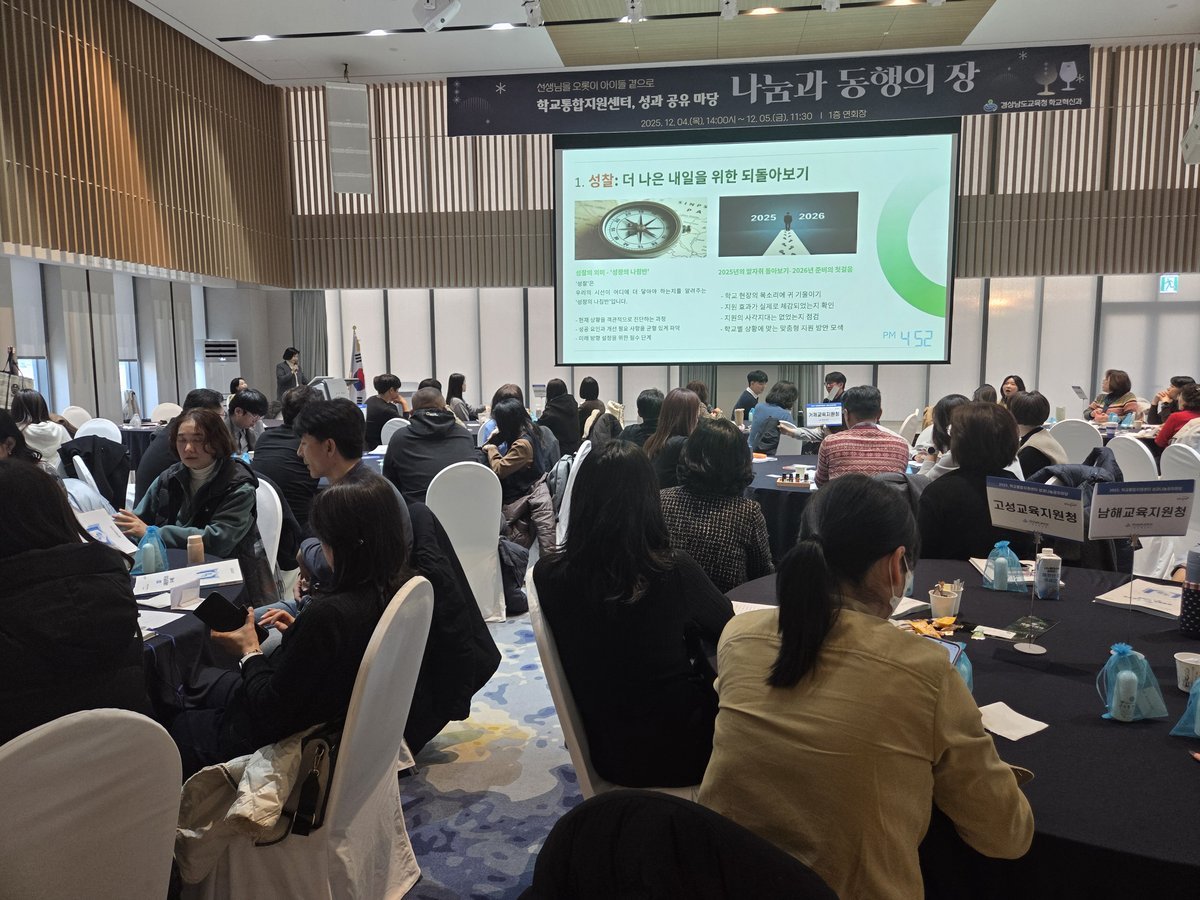 [국회의정저널] 경상남도교육청은 4~5일 이틀간 ‘학교통합지원센터, 나눔과 동행의 장’을 주제로 2025년 학교통합지원센터 운영 성과를 공유하고 2026년의 새로운 발전 방향을 모색하는 성과 공유마당을 한화리조트 거제 벨버디어에서 개최했다.
