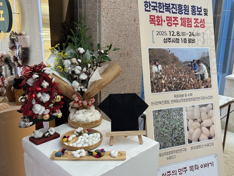 [국회의정저널] 한국한복진흥원 입주기업 누미한은 12월 8일부터 12월 24일까지 진흥원 내 목화밭에서 재배한 목화솜과 명주천을 활용한 체험형 전시를 상주시청 로비에서 진행한다.