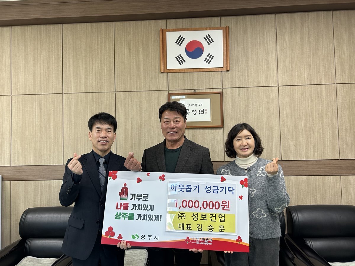 [국회의정저널] 성보건업에서는 12월 9일 상주시 공성면을 방문하여 관내 취약계층을 위해 공성면 ‘함께모아 행복금고’에 성금 100만원을 기탁하였다.