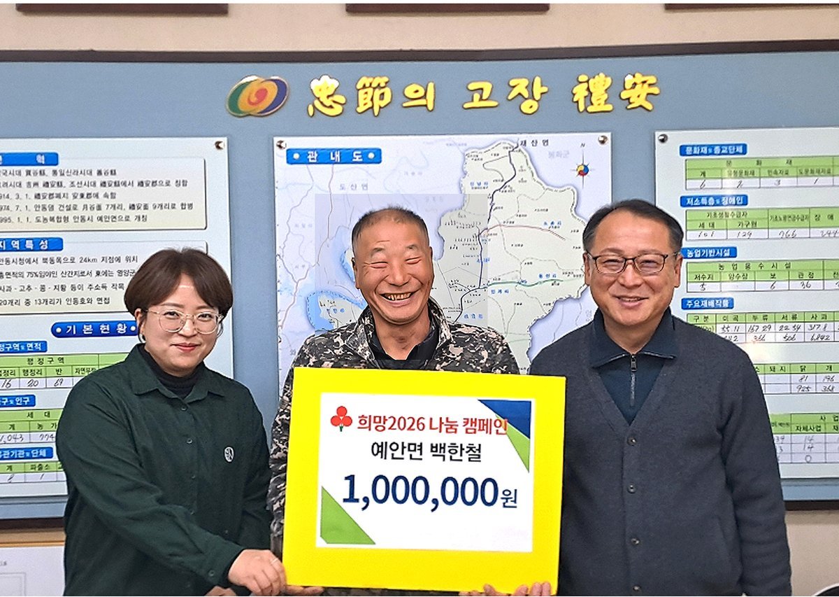예안면 주민 백한철 씨가 일백만 원을 기부하며 지역 나눔 분위기에 훈훈한 출발을 알렸다.