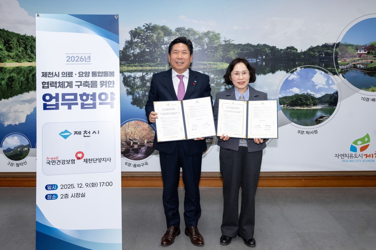 김창규 제천시장은 이날 “이번 협약은 의료와 요양, 돌봄을 하나로 잇는 대상자 중심의 통합적 지원체계를 만드는 의미 있는 출발점이며, 국민건 강보험공단과의 협력을 통해 제천 시민이 살던 곳에서 건강하게 생활할 수 있는 지역 돌봄 체계를 만들어 가겠다 ”고 말했다.