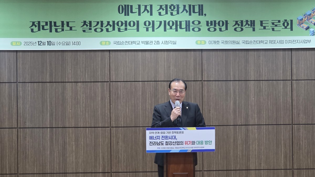 이개호 의원, 국립순천대와 변화의 기로에 선전남 철강산업 정책토론회 개최 3중 위기 직면한 광양만권 철강산업, 지속가능한 산업 생태계 해법 모색해야 (국회 제공)
