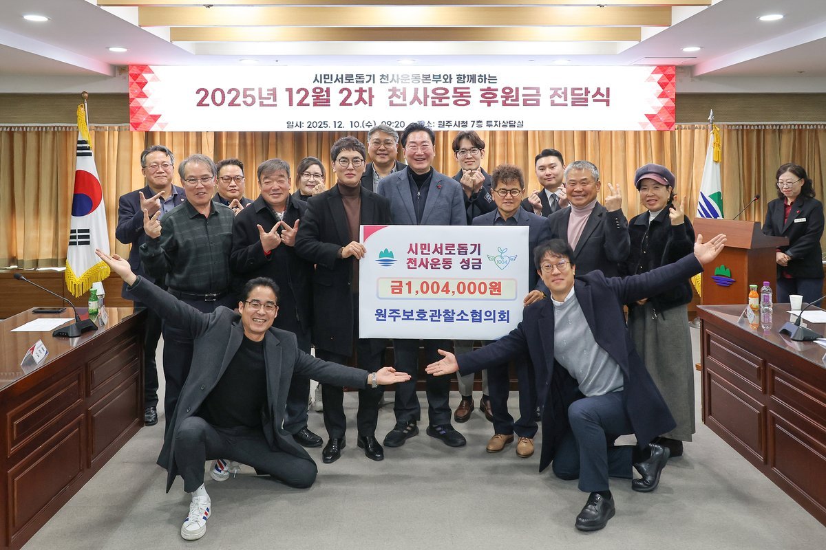 원강수 시장은 “천사운동에 동참해 주셔서 감사드린다”라며, “시민 모두가 행복한 원주가 될 수 있도록 최선을 다하겠다.”라고 말했다.