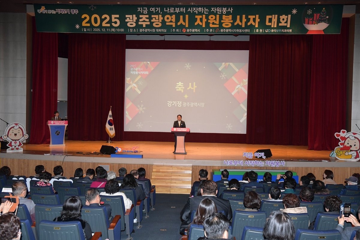 [국회의정저널] 광주광역시는 ‘세계 자원봉사자의 날’을 기념해 11일 시청 대회의실에서 지역사회 곳곳에서 헌신해 온 자원봉사자들을 격려하는 ‘2025 광주광역시 자원봉사자대회’를 개최했다.
